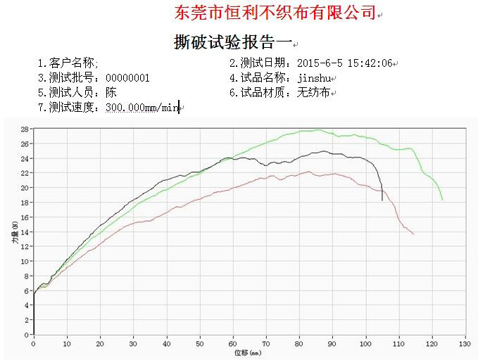 - 無紡布撕破專業(yè)試驗報告 克重樣品布: 撕破強力:無紡布受撕破...